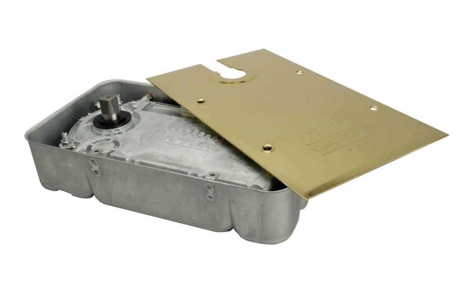Cierrapuertas hidráulico de suelo con retención.