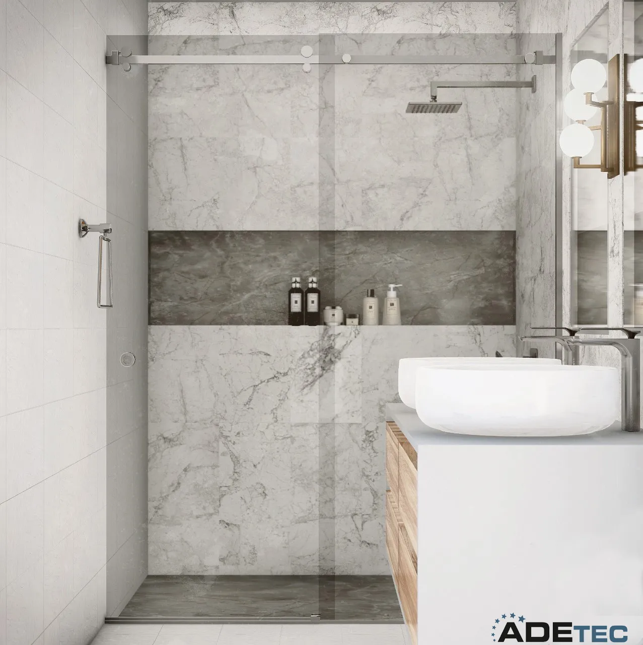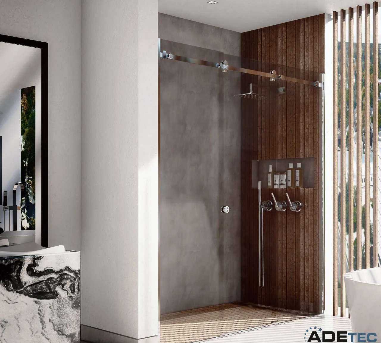 La serie de herrajes ADT100 esta pensada para ofrecer diferentes opciones, adaptadas a la distribución y tamaño del baño.