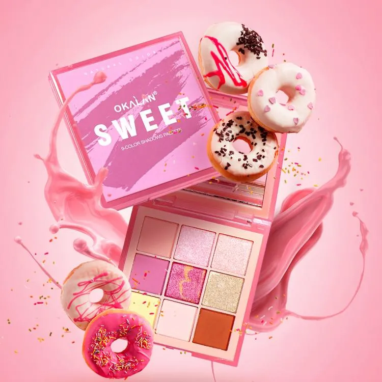 Okalan presenta sus nuevas paletas temáticas de nueve tonos en acabado shimmer y mate. Esta paleta está inspirada en los dulces y sus tonos sutiles pero brillantes te permitirán crear los looks más placenteros con su historia de color que va desde los rosas, dorados, magentas, hasta llegar a una tonalidad amarilla y champagne.